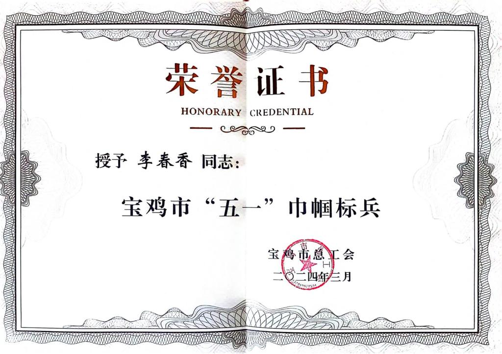 扎根一線 風(fēng)華無限||寶光股份李春香喜獲寶雞市“五一巾幗標兵”榮譽稱號