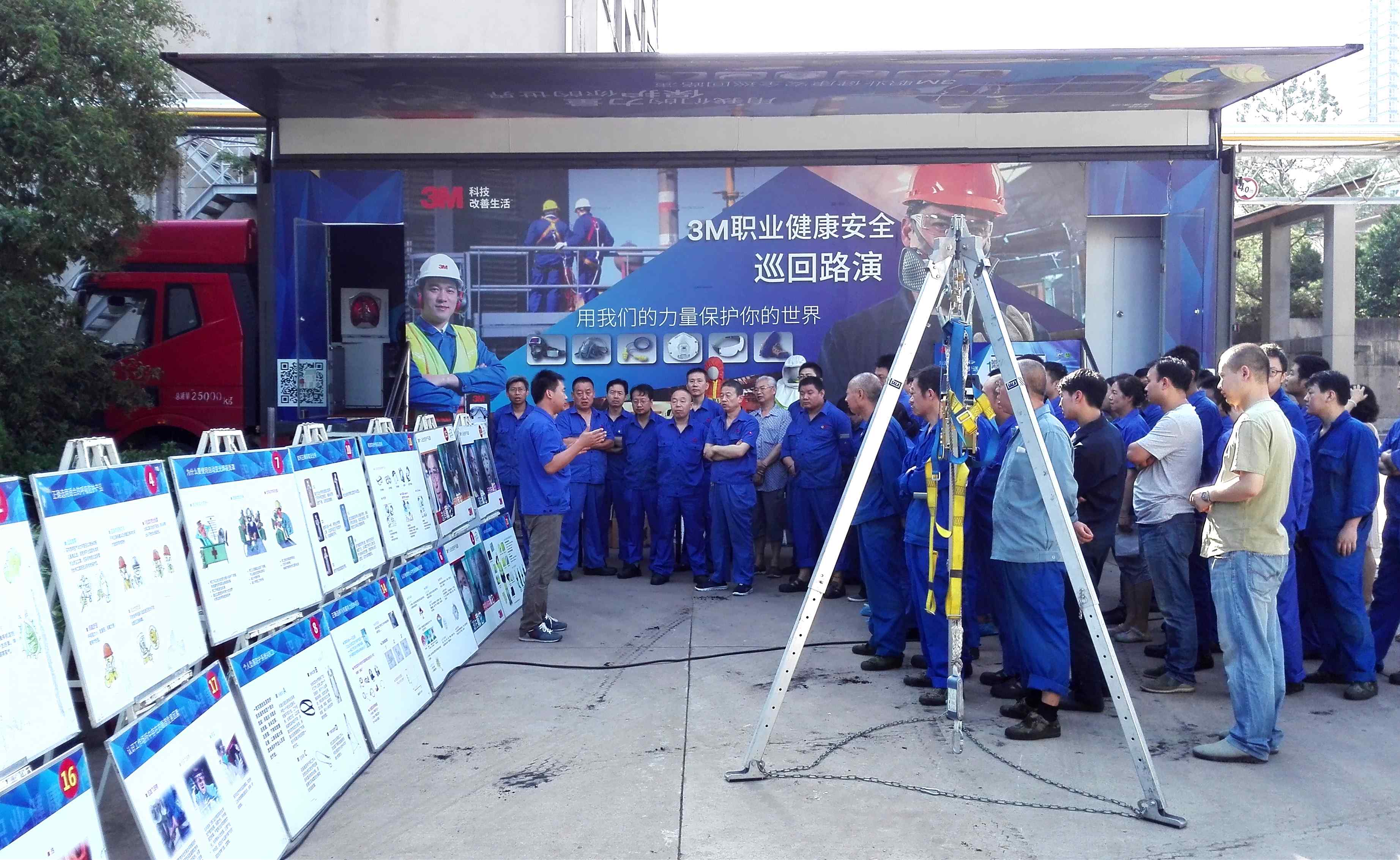 路演活動(dòng)從上午8:30時(shí)開始,連續(xù)不間斷利用移動(dòng)小課堂(現(xiàn)場(chǎng)授課)進(jìn)行了10場(chǎng)培訓(xùn),共有360名人員參加。本次培訓(xùn)主要針對(duì)員工面部防護(hù)及面部防護(hù)用品的正確佩戴、不佩戴或不正確佩戴所產(chǎn)生的危害、以及工作場(chǎng)所危害因素識(shí)別,個(gè)人防護(hù)用品的必要性、個(gè)人防護(hù)用品的選擇、使用和維護(hù)等相關(guān)知識(shí)的講解;路演利用職業(yè)病危害宣傳展板和防護(hù)眼鏡沖擊試驗(yàn)來(lái)加深、提高員工對(duì)職業(yè)安全健康的認(rèn)識(shí)。