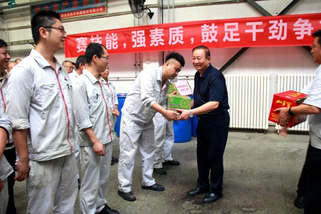 為關(guān)愛奮戰(zhàn)在高溫一線的勞動(dòng)者,切實(shí)做好夏季防暑降溫工作,7月27日,陜西省總工會(huì)黨組成員、副主席、陜西省國防工會(huì)主席吳志毅帶隊(duì)到我公司開展“送清涼”慰問活動(dòng)。寶光集團(tuán)黨委副書記、寶光股份黨委書記、總經(jīng)理謝洪濤,工會(huì)主席付宗喜陪同。