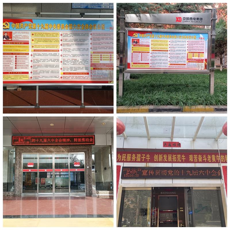 寶光股份黨委工作部門通過LED大屏、宣傳櫥窗、展板、滾動電子屏、電視、黨建宣傳欄、主干道橫幅等宣傳平臺進行十九屆六中全會主題外觀、宣傳口號及主題內(nèi)容宣傳,營造濃厚的宣傳氛圍。