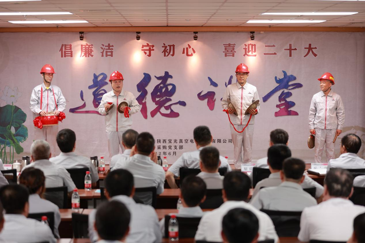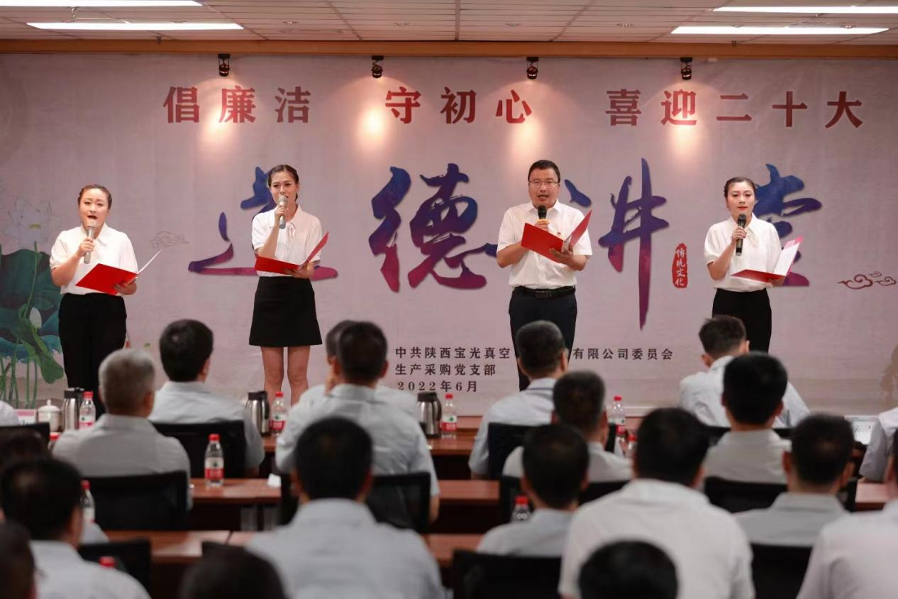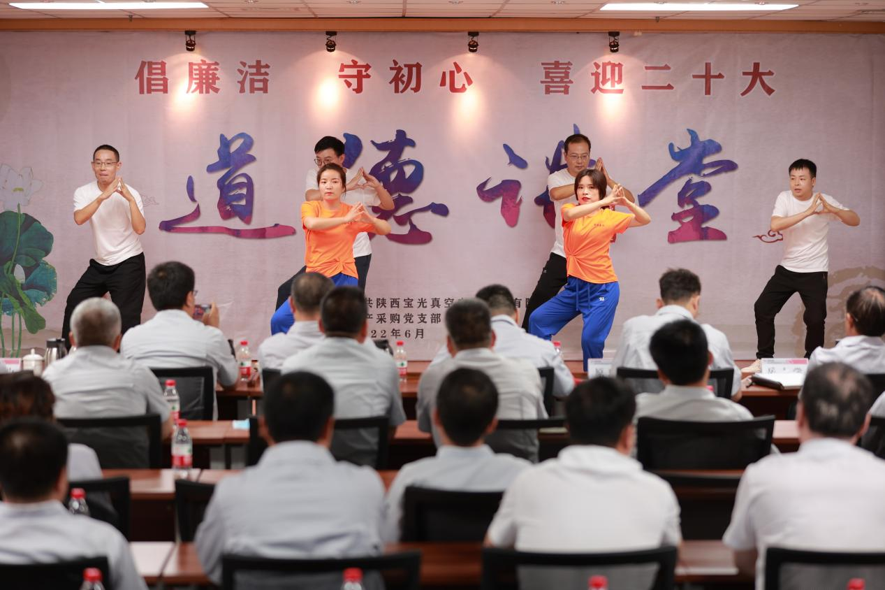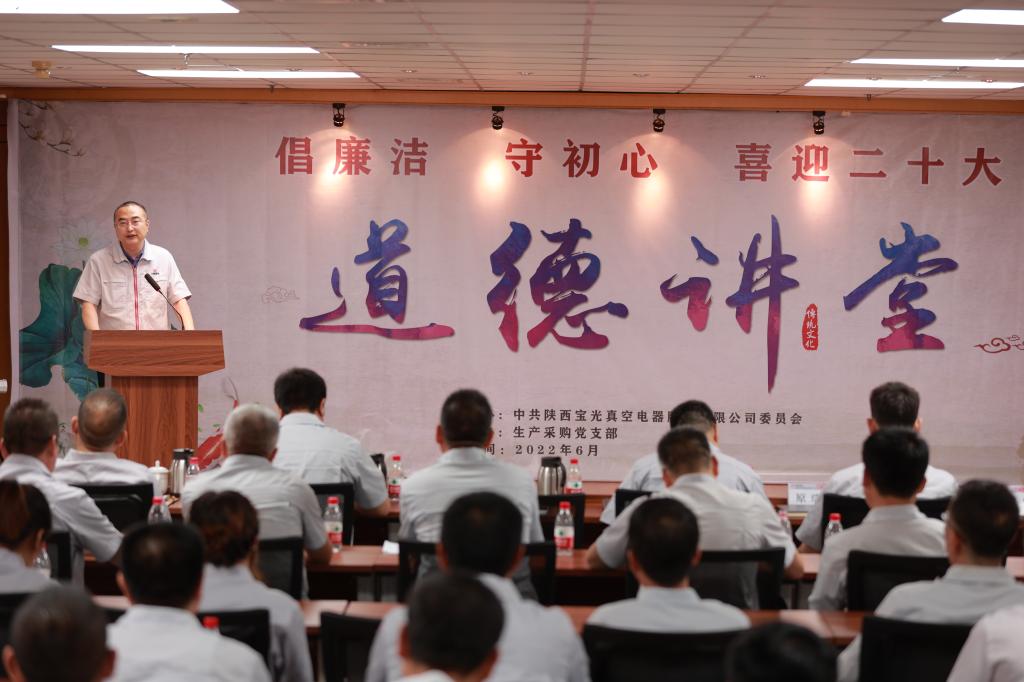 為將黨史學(xué)習(xí)教育不斷引向深入,全面提升廣大職工道德素養(yǎng),進(jìn)一步促進(jìn)企業(yè)精神文明建設(shè),切實(shí)激發(fā)廣大干部職工砥礪奮進(jìn)、爭開新局的信心和決心,以更加飽滿的工作熱情迎接建黨101周年和黨的二十大的勝利召開,6月28日下午,由寶光股份黨委主辦,生產(chǎn)采購黨支部承辦的“倡廉潔、守初心、喜迎二十大”主題道德講堂如期舉行。