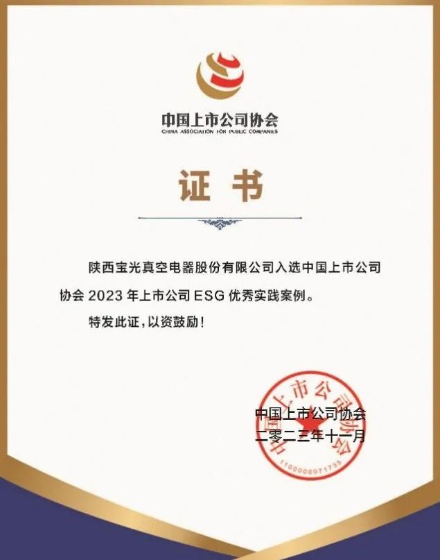 后續(xù),中國上市公司協(xié)會(huì)將匯編形成《中國上市公司ESG最佳實(shí)踐案例2023》在可持續(xù)發(fā)展大會(huì)上發(fā)布。獲評優(yōu)秀ESG實(shí)踐案例,充分展現(xiàn)了寶光股份在完善ESG治理體系、貫徹綠色發(fā)展理念、履行社會(huì)責(zé)任等方面的優(yōu)秀做法。