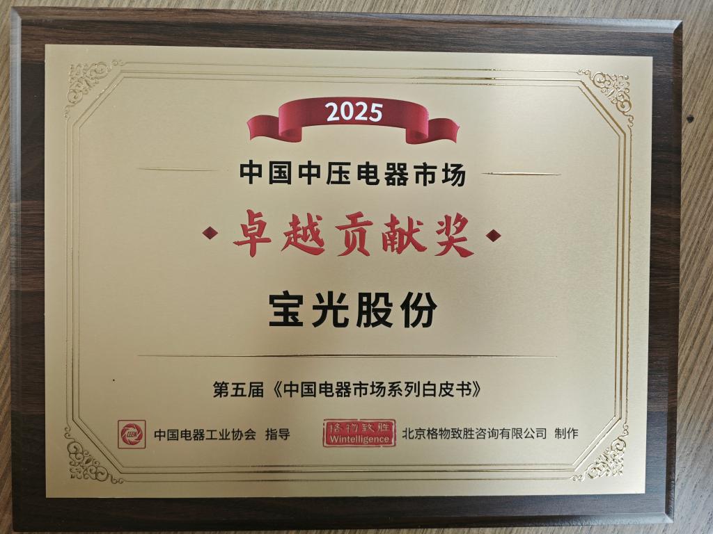 近日,由中國電器工業(yè)協(xié)會(huì)指導(dǎo),中電協(xié)理事單位主辦的《2025年中國電器市場(chǎng)系列白皮書》發(fā)布會(huì)在上海隆重舉行。會(huì)議表彰在市場(chǎng)占有率、增長(zhǎng)率和產(chǎn)品創(chuàng)新等方面取得成績(jī)的優(yōu)秀電器企業(yè),寶光股份應(yīng)邀參會(huì),榮獲2025年度中國中壓電器市場(chǎng)“卓越貢獻(xiàn)獎(jiǎng)”和“銷量領(lǐng)先獎(jiǎng)”。