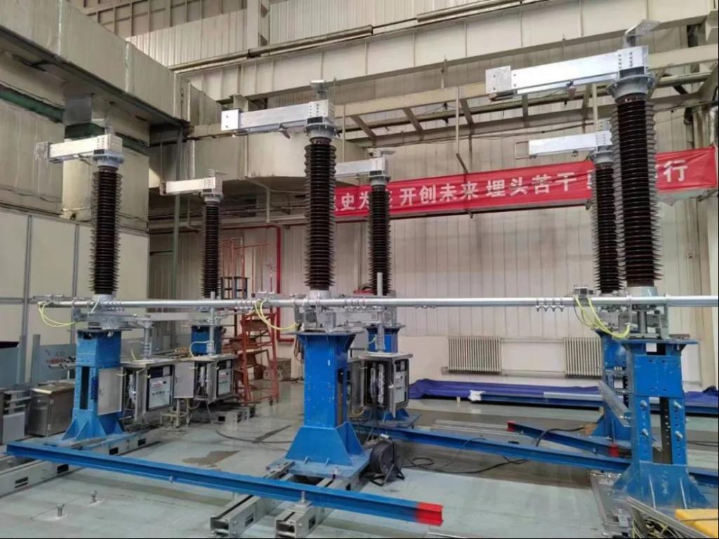 由西開電氣為烏海敖瑞500千伏輸變電項目安裝的7個間隔550kVGIS和7個間隔220kV HGIS一次性通過工頻耐壓試驗。烏海敖瑞500千伏輸變電工程位于內(nèi)蒙古自治區(qū)巴彥淖爾市烏拉特后旗獲各琦蘇木境內(nèi),是內(nèi)蒙古自治區(qū)首批沙、戈、荒新能源大基地重點建設(shè)項目。為確保優(yōu)質(zhì)高效完成該項目安裝任務(wù),項目團隊積極溝通施工方,制定詳細(xì)切實可行的安裝計劃,動態(tài)實施全過程質(zhì)量監(jiān)督和預(yù)控管理,積極克服蒙西地區(qū)低溫寒冷風(fēng)沙大的極端天氣,主動發(fā)揚“特別能吃苦、特別能戰(zhàn)斗、特別能奉獻”的優(yōu)良傳統(tǒng),全力搶抓施工進度,助力敖瑞500千伏輸變電工程順利投產(chǎn)。