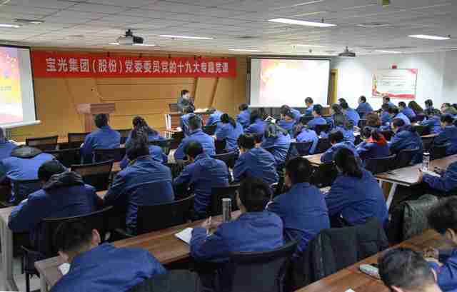 12月13日晚18:30時(shí),寶光集團(tuán)(股份)黨委委員黨的十九大精神專題黨課,在公司科技大樓2樓大會(huì)議室進(jìn)行,李軍望同志以《統(tǒng)一思想抓落實(shí)——深入學(xué)習(xí)貫徹習(xí)近平新時(shí)代中國(guó)特色社會(huì)主義思想》為主題,為來(lái)自進(jìn)出口公司、C產(chǎn)品制造部、固封極柱產(chǎn)品制造部等3個(gè)黨支部的100余名基層黨員做了專題黨課。