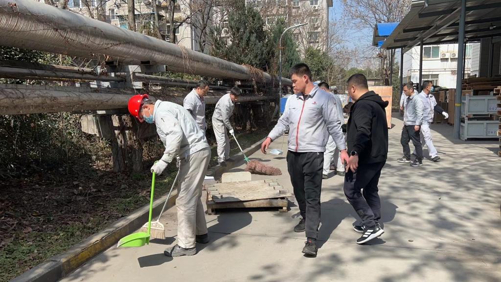 精工分公司黨支部電器產(chǎn)線職工對產(chǎn)線窗戶上玻璃和窗臺進行擦拭,并對花壇內(nèi)樹葉垃圾、花房前建筑垃圾進行了仔細清掃和集中裝運清理;波紋管產(chǎn)線職工對產(chǎn)線外車棚地段衛(wèi)生進行清理,并對亂停亂放的車輛進行規(guī)范擺放。通過2個小時的緊張勞動,路面變得整潔干凈、窗戶玻璃變得一塵不染、花房前的環(huán)境煥然一新。