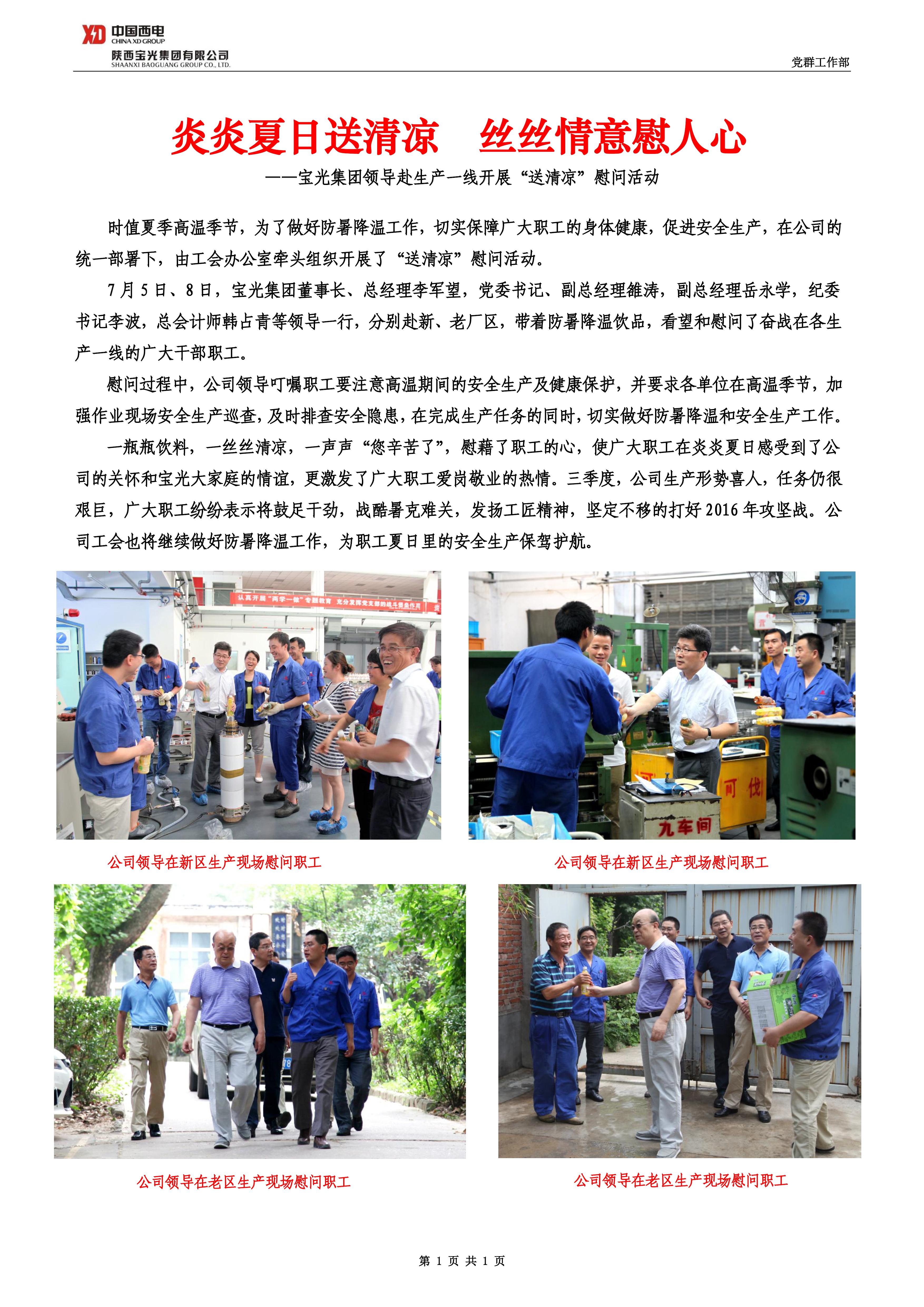 寶光集團(tuán)領(lǐng)導(dǎo)赴生產(chǎn)一線開展“送清涼”慰問活動