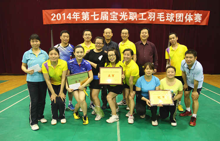 公司2014年度第七屆寶光職工羽毛球團體賽,共有10支代表隊參加比賽.比賽從11月24日晚開始,經(jīng)過48場的角逐,于11月27日晚完成了所有比賽設(shè)定的項目,圓滿落下了戰(zhàn)幕。