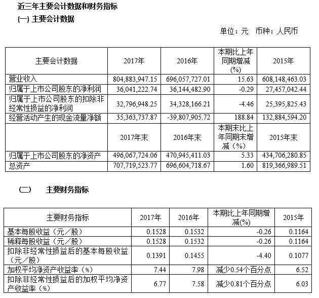 寶光股份2017年度主要財(cái)務(wù)指標(biāo)