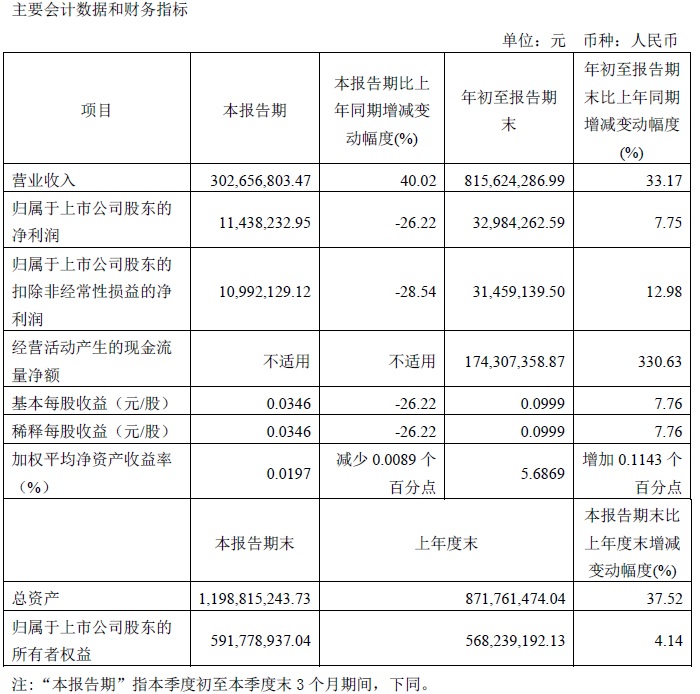 寶光股份2021年三季度主要財(cái)務(wù)指標(biāo)