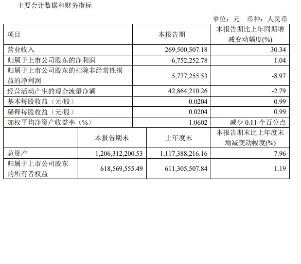 寶光股份2022年一季度主要財務(wù)指標(biāo)