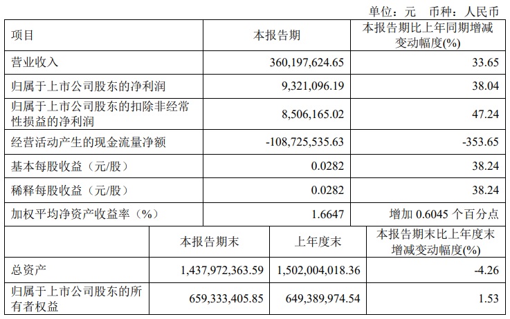 寶光股份2023年一季度主要財(cái)務(wù)指標(biāo)