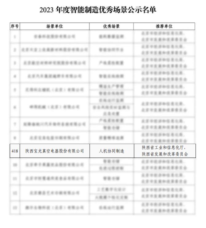 近期,工業(yè)和信息化部公布了“2023年度智能制造示范工廠揭榜單位和優(yōu)秀場景名單”,寶光股份申報(bào)的《真空滅弧室關(guān)鍵零件智能生產(chǎn)線》項(xiàng)目順利入選智能制造示范優(yōu)秀場景,標(biāo)志著寶光股份智能制造水平邁上新臺階。