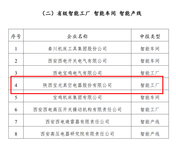 3月14日,陜西省工信廳裝備工業(yè)發(fā)布2021年度省級(jí)智能制造試點(diǎn)示范企業(yè)及省級(jí)智能工廠名單,寶光股份獲評(píng)“2021年度省級(jí)智能工廠”。